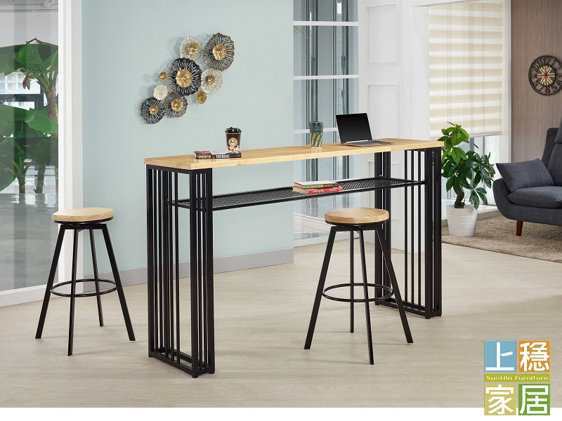 餐桌:3公分厚松木實木+防鏽烤漆黑鐵腳架