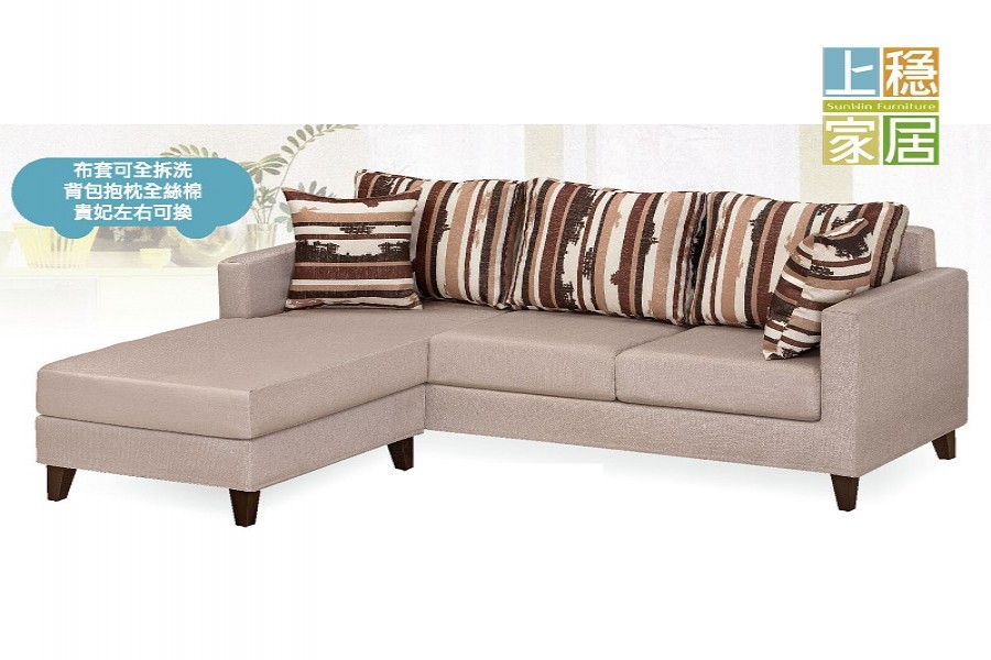 --條紋抱枕L型布沙發