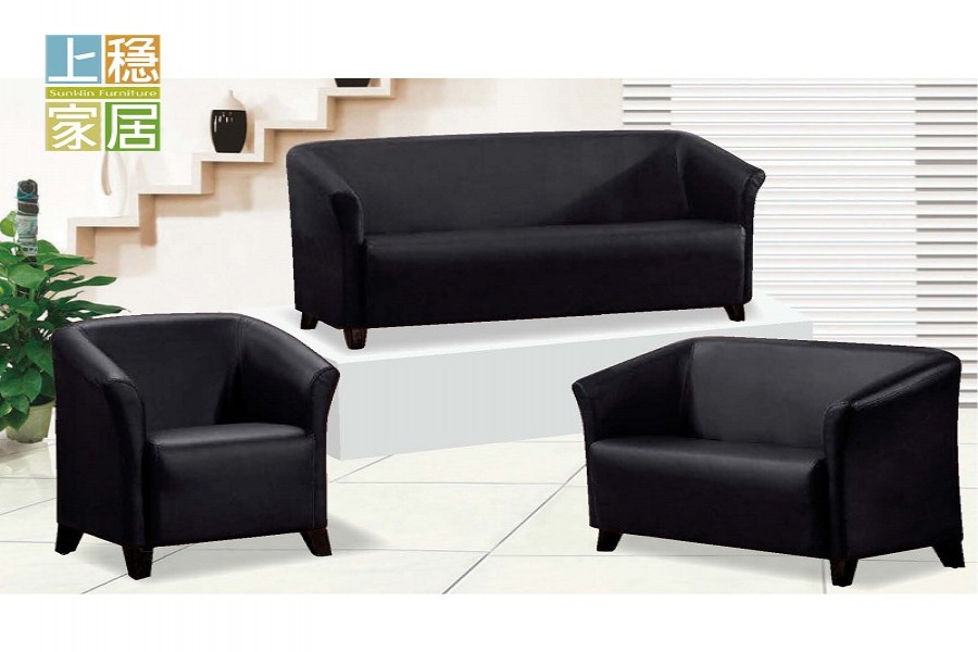 --簡約型透氣皮黑色沙發組(3+2+1)