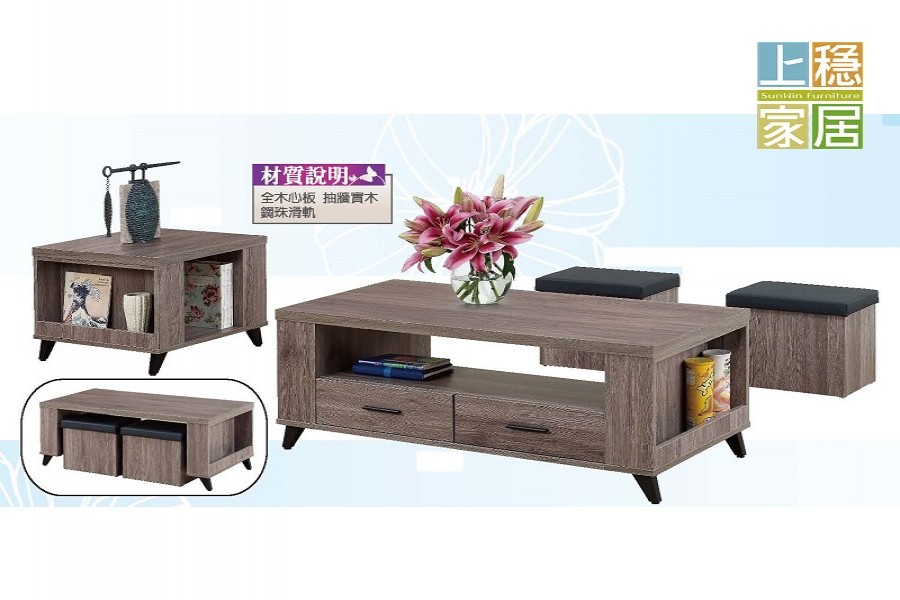 --鴻鈦古橡木大小茶几組(含茶几椅*2)
