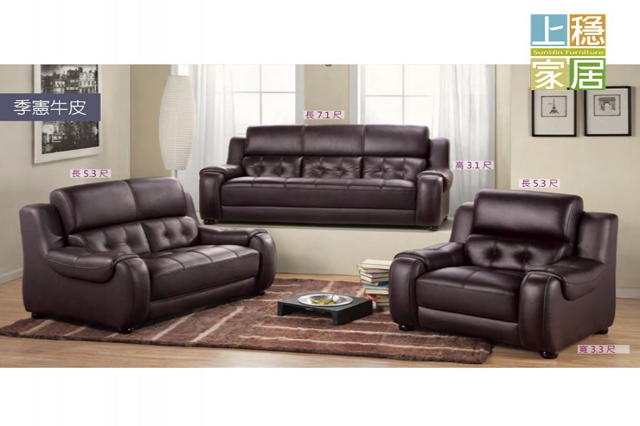 --揚森深咖色季憲牛皮1+2+3沙發組