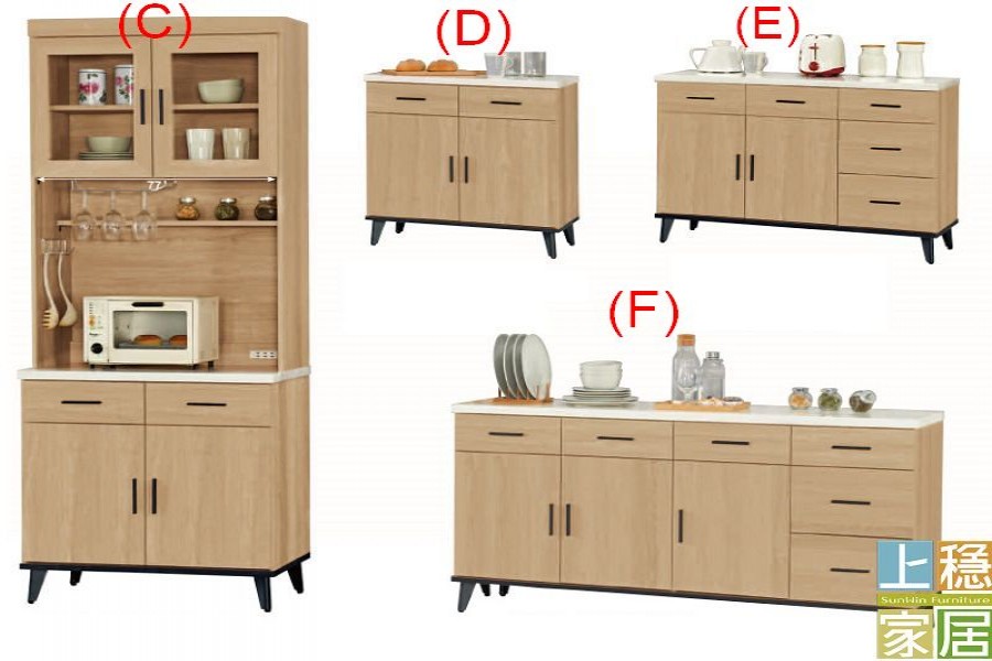 --艾森莉黃橡木石紋面2.7尺餐櫃組(C)
