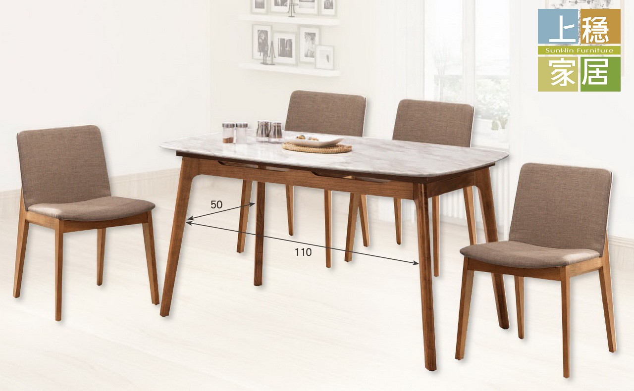 餐桌:桌腳水曲流實木製成、桌面人造大理石