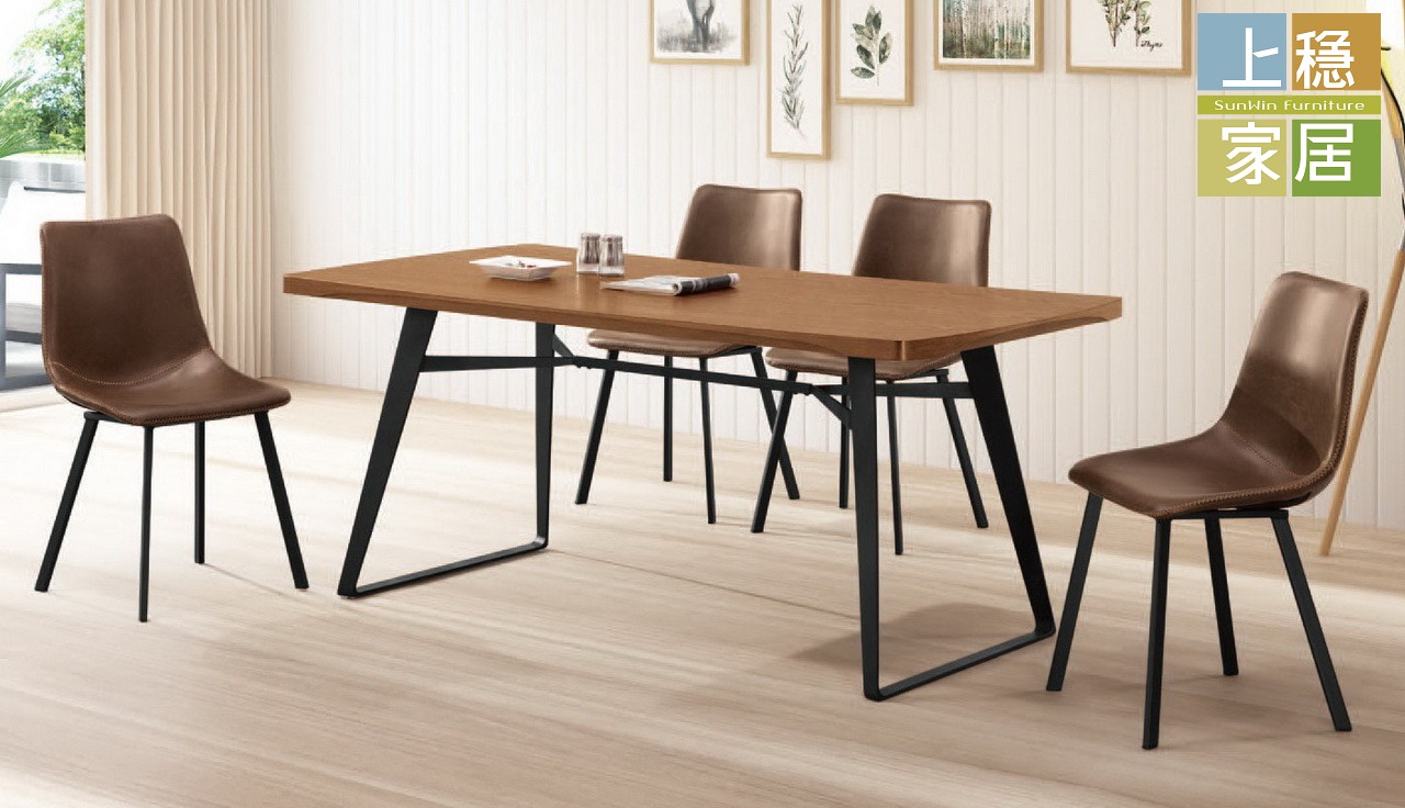 餐桌:桌面MDF貼實木皮桌面、桌腳實心噴砂五金腳