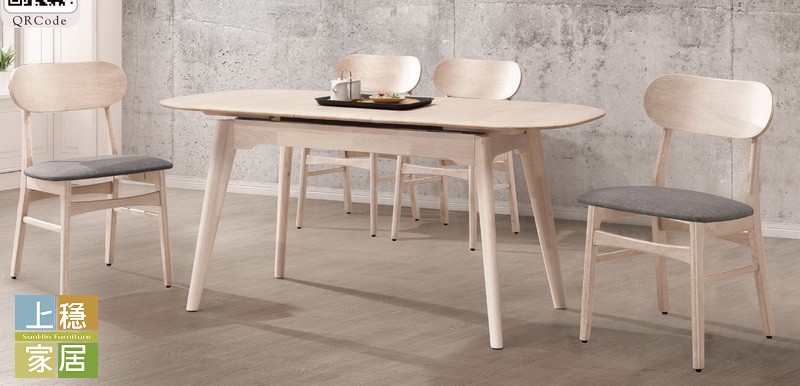 西凱水洗白實木伸縮餐桌 淺色餐桌