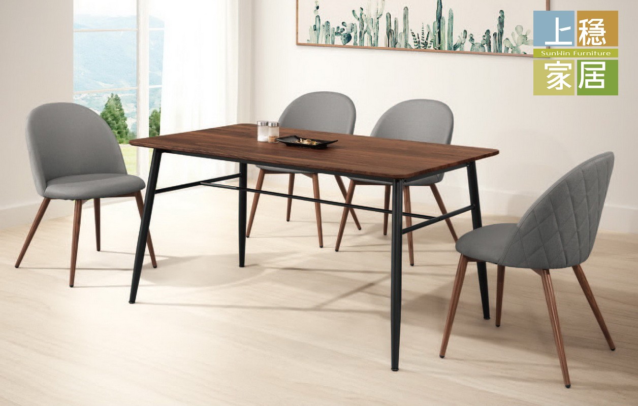 餐桌:桌面MDF貼胡桃木皮、桌腳黑色噴砂鐵架