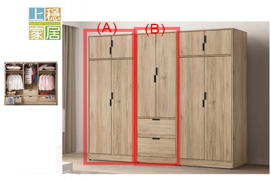 --西達文原木色7尺衣櫃組