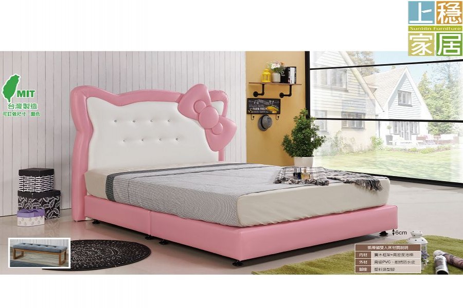 --凱蒂貓5尺耐燃皮雙人床 $16100