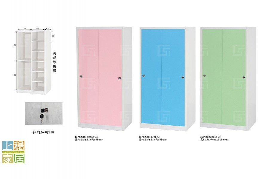 --亞爵塑鋼拉門衣櫥(粉紅/白色)
