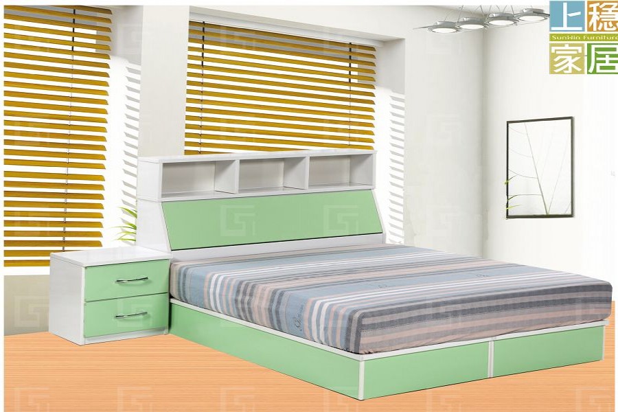 床頭箱(白橡色/綠+白色) 寬151*深40*高111公分