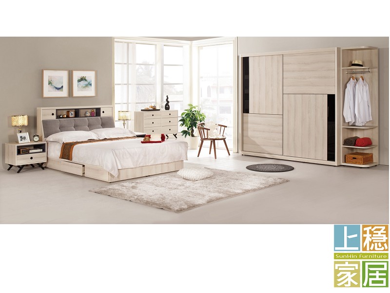 材質 採用符合國際標準低甲醛防蛀木心板 塗裝 採用優麗坦耐磨.耐水塗裝 抽屜 鋼珠滑軌 床頭墊 高級棉麻布+高密度泡棉(不可拆洗) 腳座 黑砂粉體烤漆五金架 背板 美背式處理