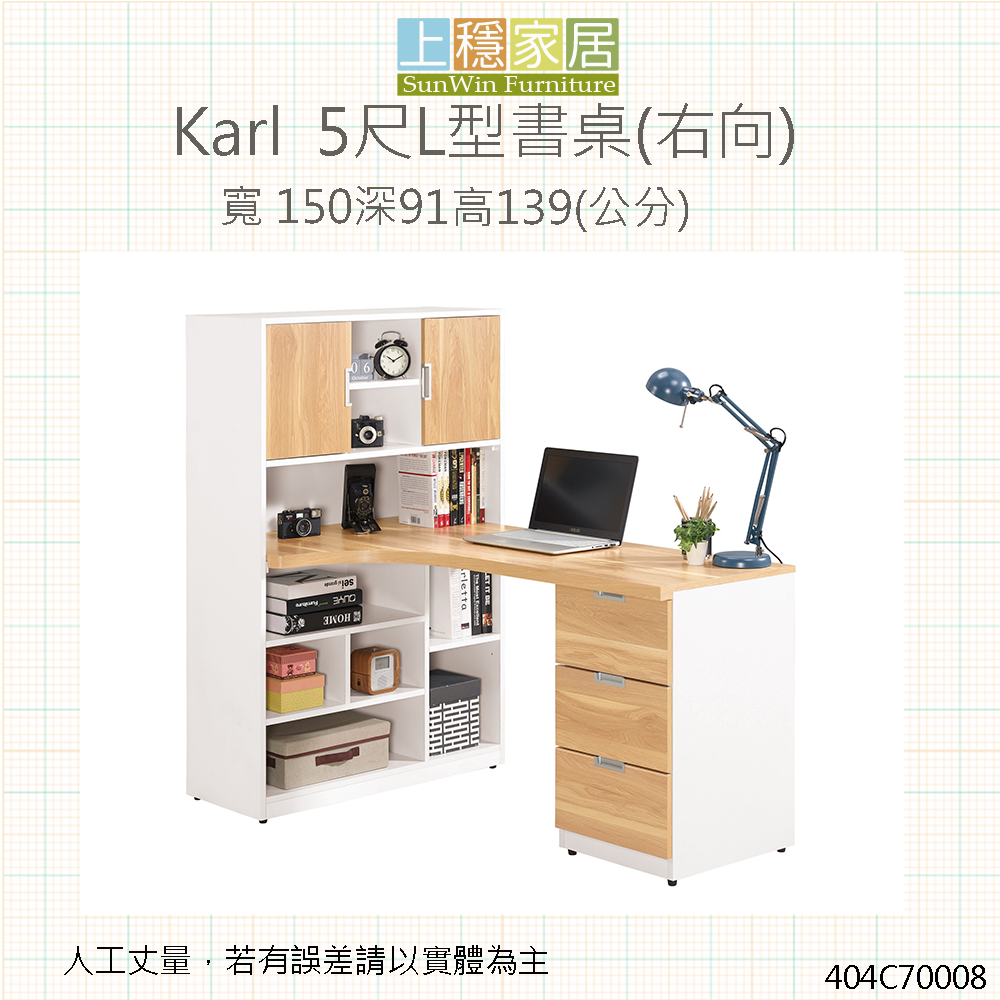 --Karl 5尺L型書桌(右向) 寬150*深91*高139公分 (附活動隔板1片)
