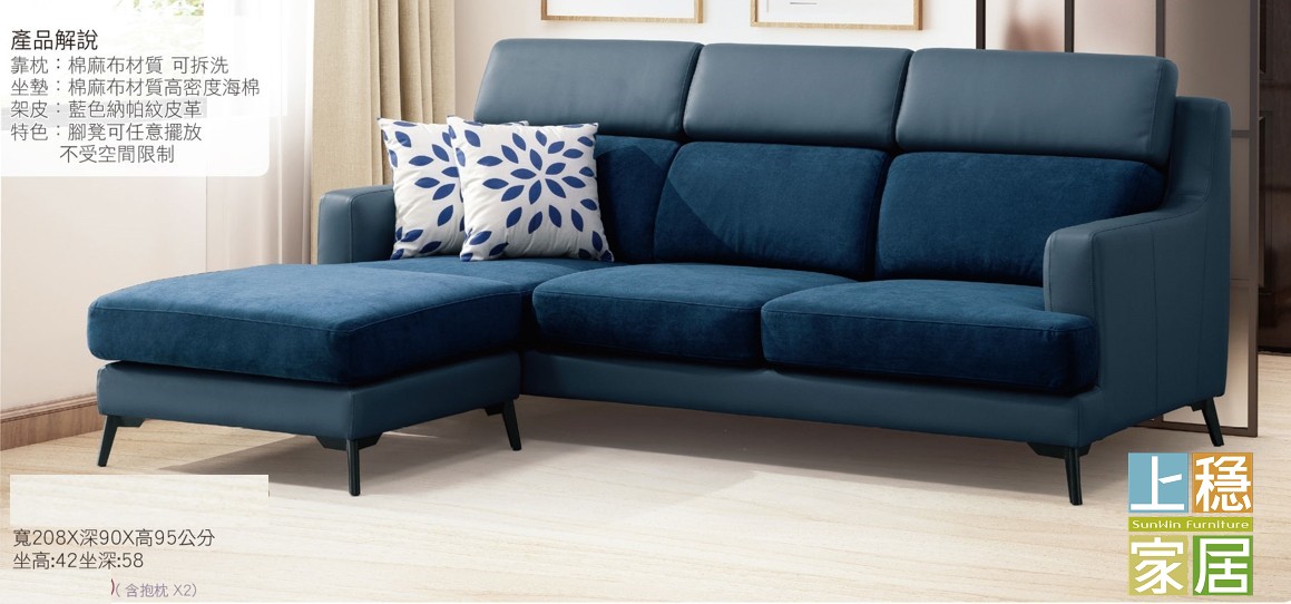 Ernst 藍色皮布L型沙發 北歐風沙發 工業風沙發