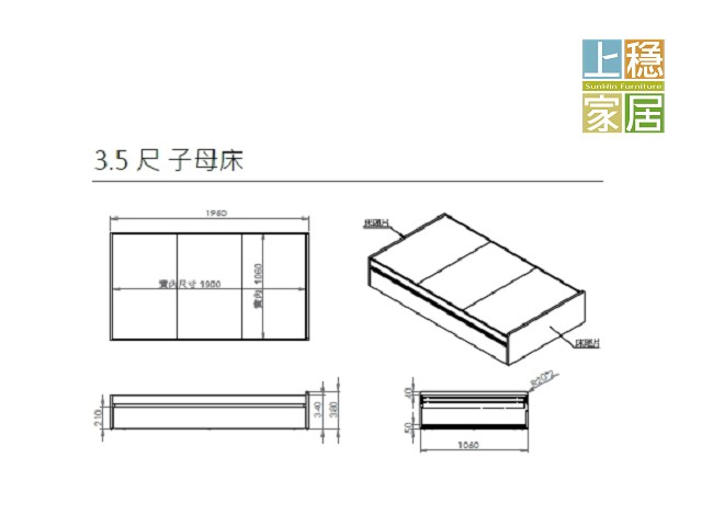 美爾艾淺胡桃3.5尺親子床台(母床+子床)