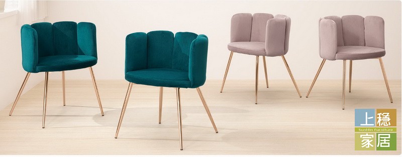 餐椅:不鏽鋼電鍍金腳、絨布包覆