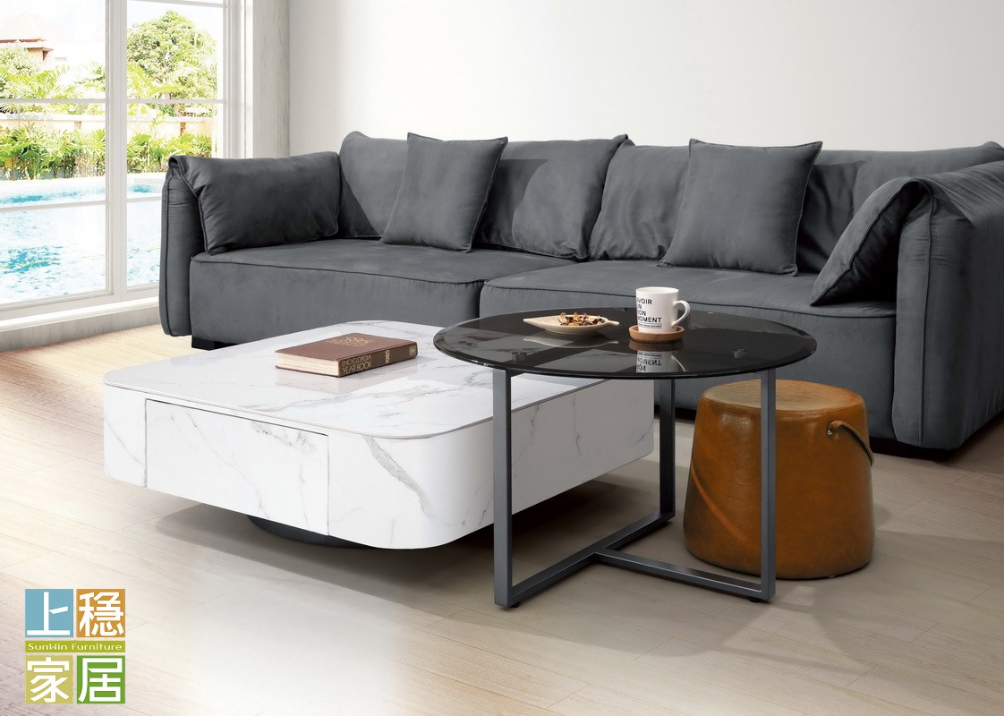 Gardy岩板大茶几 玻璃圓几(含凳)