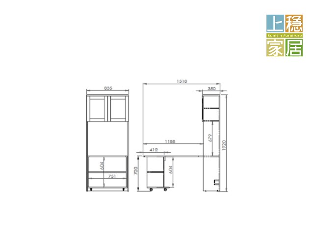 材質 櫃體、檯面、門板、隔板全採用E1-V313環保系統板